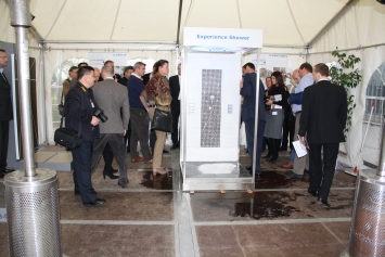 Am Veranstaltungs-Vormittag gab es vier verschiedene Theorie- und Praxisworkshops zu den Themen "Heilerde-Dampfbad" und "Erlebnisdusche". Ein halbstündiger Rotationszyklus bot den Teilnehmern die Gelegenheit, jeden Workshop zu besuchen. Die internationalen Gäste waren dankbar, nicht die Qual der Wahl zu haben.