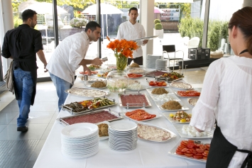 Der Starkoch Vincenzo Paradiso (3. von links) verwöhnte mit seinem Team die Teilnehmer in der Mittagspause
