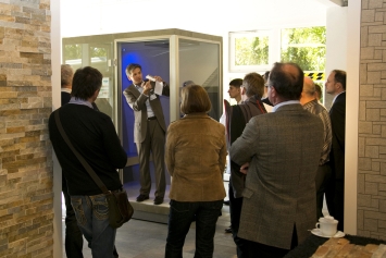 Das Herzstück bei den diesjährigen Workshops war eine Dusch- Dampfkabine, in der die entscheidenden Komponenten – von der Konstruktion über die Technik bis zur Oberfläche - von den Gastgeberfirmen stammten. Die Unternehmen konnten so die Kompetenz ihrer Produkte in Verbindung mit anderen Komponenten anschaulich darstellen.