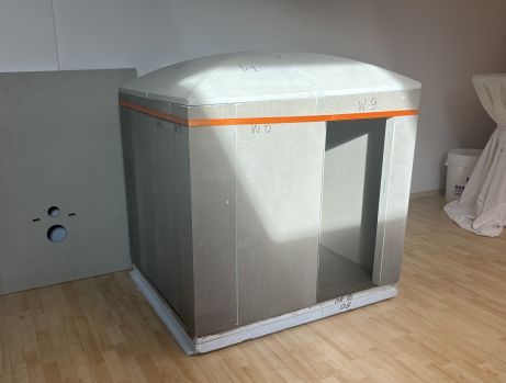 Tag 2 war im Rahmen der „Akademie des Handwerks" komplett der Praxis gewidmet. Während im Außenbereich – in Kooperation mit der Firma Schönox - unsere neue Bauplatte für Fußbodenheizungen FLOOR WH F verlegt wurde, präsentierte unser Team im Innenbereich den Aufbau ein Modell-Dampfbads im Maßstab 1:2.