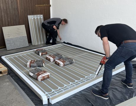 Im Außenbereich folgte die Verlegung unserer neuen Bauplatte FLOOR-WH F für Fußbodenheizungen.