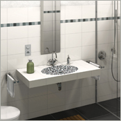 The new LAVADO-FLOAT washstand panels make do without a base construction and thus appear to ‘float’.