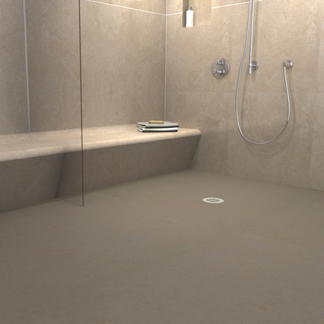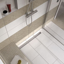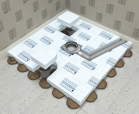 ... are hard foam shower base elements with a higher compressive strength for accepting alternative coverings, e.g. PVC, linoleum. The matching drain technology consists in the standard version of a grate fitting frame and slotted grate made of plastic as well as a horizontal or vertical floor drain support DN 50 with odour trap. Alternatively, a design variant made of stainless steel is also available.