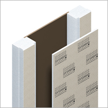 Prefabricated elements made of hard foam support material for cladding of pre-wall installation systems with 4 boreholes.