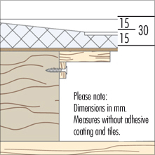 Hard-foam shower base elements, particularly flat, installation height 15/30 m, for the use on wooden sub-constructions. Additional formats available.