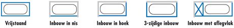 Voor de drie designvarianten ontstaan de volgende inbouwsituaties: